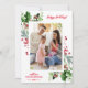Cadre hivernal unique de fêtes de Noël avec verdure, baies, photo de votre famille, calligraphie élégante. Utilisez l'outil Personnaliser pour ajouter vos informations et changer la photo. Plus d'options dans ma Collection de photos de Noël.