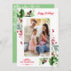 Cadre unique de fêtes d'hiver à l'aquarelle avec verdure, baies, photo de votre famille, calligraphie élégante. Utilisez l'outil Personnaliser pour ajouter vos informations et changer la photo. Plus d'options dans ma collection de photos de Noël.