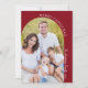 Cette carte de Noël photo présente un design moderne minimaliste avec une photo encadrée par un arc bohème. Le design incorpore une ligne incurvée de texte blanc qui suit gracieusement le bord de l'image. Pour ajouter une touche d'élégance, le design est orné d'une belle écriture manuscrite. Cette combinaison d'une mise en page épurée et d'une écriture délicate crée une carte de vœux de fête sophistiquée et élégante avec un fond traditionnel rouge foncé et un texte blanc.