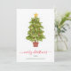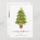 Saluez la saison de Noël vos proches, amis et famille avec cette carte de vœux élégante et moderne. Elle présente un arbre de Noël décoré avec des lumières colorées et des cerises dans la neige, le tout peint à l'aquarelle, ainsi qu'un message «Joyeux Noël» dans une simple police calligraphique rouge. Vous pouvez ajouter une photo de famille et un message au dos.