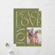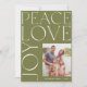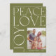Carte de Noël verte avec photo personnalisée Paix Amour Joie et texte personnalisé sur les deux côtés en typographie moderne élégante.