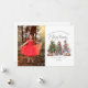 Illustration d'une maison de fée sur une souche d'arbre décorée pour Noël avec deux arbres, des lumières de Noël et une lanterne. Le texte dit : "Je vous souhaite un Noël féerique" Personnalisez le nom, l'année et la photo.