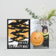 Envoyez à vos amis et à votre famille un vœu de Joyeux Halloween avec une photo sur cette carte postale effrayante remplie de chauves-souris volant devant la pleine lune. Ajoutez une photo de votre famille, de vous-même ou de votre animal de compagnie !