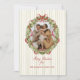 Carte de vacances de Noël intemporelle et fantaisiste avec un arrière - plan rayé vert sage et un motif de couronne d'aquarelle avec un ruban rouge. Cette carte de vacances fera sentir à n'importe qui l'esprit de Noël. Sur le côté avant, nous avons la belle couronne - jouant ornant votre photo et sur le côté arrière est un petit arc vert sauge, un autre modèle photo et un espace pour vos voeux de Noël de compléter le message parfait. Faites passer la joie et applaudissez avec notre carte de Noël à l'arc aquarelle!