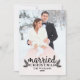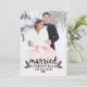 Le design élégant des cartes photos de vacances pour les mariages d'hiver présente votre portrait de mariage préféré avec un motif de couverture "Noël Marié" en noir. Une deuxième photo et un texte personnalisé apparaissent au verso de la carte. Le pin moderne et la berge de printemps accentuent le design.