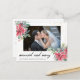 Le design comprend un bouquet floral poinsettia rouge avec des parties scintillant d'or autour de la photo personnalisée. Marié et joyeux est écrit en noir slanting écriture manuscrite. Au verso de la carte postale, ajoutez votre message personnalisé.
