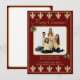 Ceci est une carte de Noël avec un espace pour une photo. Elle comprend des illustrations d'anges et du houx. La carte est présentée en rouge foncé mais est disponible dans une variété de couleurs. Le design permet d'écrire l'adresse au dos, ou offre suffisamment de place pour écrire un message personnel.
