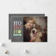 "ho ho ho" avec empreinte de patte et os incorporés dans le design sur un fond inspiré d'un tableau noir. Personnalisez la photo et le nom.