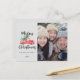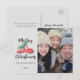 Cette carte postale photo de Noël avec un camion rouge et un arbre crée une carte de vœux de Noël moderne avec une touche vintage. Le design présente un camion pickup rouge classique transportant un sapin de Noël avec les mots "Joyeux Noël" dans une police manuscrite moderne. Ajoutez votre photo de Noël et personnalisez la carte postale avec le nom de votre famille, l'année, votre message personnel et vos noms.
