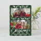 La carte de vacances photo plaid moderne et festive comprend deux de vos photos horizontales préférées contre un arrière - plan plaid noir et vert à motif de buffle. Personnalisez le texte personnalisé "We Wish You A Joyeux Noël" avec votre nom de famille et l'année. Le dos de la carte comprend une photo horizontale supplémentaire avec le libellé du message de vacances personnalisé.