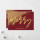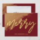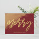 Carte de Noël. Cette belle carte plate présente une écriture moderne et élégante, avec une éclaboussure d'aquarelle dorée et un fond de couleur vin bordeaux uni. Changez la photo du modèle pour la vôtre. Veuillez contacter Antique Chandelier si vous souhaitez apporter des modifications à cette conception de carte de Noël.