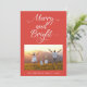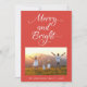 Carte de vacances élégante rouge avec "Joyeux et Lumineux" dans un script blanc élégant, votre photo de famille préférée, et votre nom et l'année..