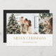 Photo moderne en noir et or Joyeuse carte de Noël avec deux photos sur le devant et la chute de neige sur un arrière - plan noir à l'arrière. Personnalisez facilement cette carte de vacances photo avec vos photos, le nom de famille et l'année. Plus d'options de couleur disponibles, ou customisez cette carte avec votre couleur préférée à l'aide de l'outil de conception.