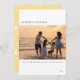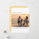 Un design moderne pour les cartes de fin de année dispose d'une photo horizontale dans les champs de texte personnalisables au centre. Jaune ensoleillé et motif de Noël de l'autre côté de la carte.