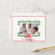 Carte de Noël photo, avec nom et date de famille. Cadre rouge. Garland.