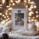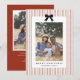 Carte de vacances photo 2 plate avec cadre de nœud à ruban noir Prépa et rayure rouge festive.