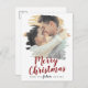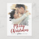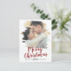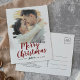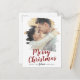 Cette carte postale de vacances de photo de sauvegarde de Noël rouge brossé fait la parfaite salutation de vacances simple pour un couple fiancé. Le design unique et artistique présente votre photo en coups de pinceau peints à l'aquarelle avec une calligraphie moderne en rouge et blanc.