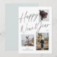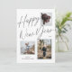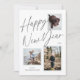 Cette carte de vœux de vacances photo élégante et décontractée comporte trois photos et lit "Bonne année" dans une police de script noir.