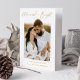 Fêtez votre premier Noël en couple avec notre carte photo de vacances Marié et brillant! L'avant de la carte présente "Marié & Lumineux" dans un script moderne en or écrit à la main. Votre photo de mariage est affichée avec une bordure blanche rugueuse. Personnalisez l'avant de la carte en ajoutant un message d'accueil personnalisé avec vos noms indiqués ci-dessous. L'intérieur de la carte comporte une photo supplémentaire avec espace pour un message personnalisé ci-dessous. Le dos de la carte affiche un arrière - plan doré avec un motif étoilé blanc brillant.