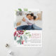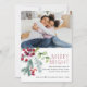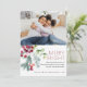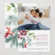 Carte de Noël festive avec votre photo préférée, typographie moderne et classique, verdure de baies de houx aquarelle.