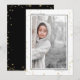 Les cartes photo élégantes et mignonnes sont parfaites pour tous vos amis et votre famille pendant cette période des fêtes. Personnalisez le texte "Meilleurs vœux" avec votre propre message et changez le nom de famille et l'année, puis remplacez la photo par une de vos enfants, de votre animal de compagnie ou de toute la famille. Le design présente une bordure noire autour de la photo avec un bokeh doré en arrière-plan et un espace pour mettre votre nom de famille et l'année. Le verso présente le même bokeh doré avec des étoiles dorées sur fond noir.
