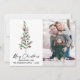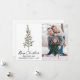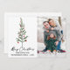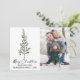 Élégante Calligraphie moderne Encre Script Aquarelle Pine Arbre avec Ruban Rouge Bourgogne et ornements de Noël Joyeux Noël Photo Carte de vacances