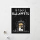 Carte Premium Halloween d'horreur de maison hantée avec texte et photo de Joyeux Halloween. Saisissez cette carte Premium incroyable pour votre petit-fils, papa, maman, enfants et famille.