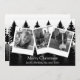 Cartes de Noël personnalisées. Photos de famille en noir et blanc avec une rangée d'arbres grands pins cartes modernes simplistes.
