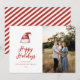 Aquarelle festive chapeau de Santa, carte photo de vacances. Caractéristiques, typographie rouge avec coordination du support motif à bandes.