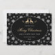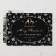 Carte de vacances photo élégante noire, blanche et dorée avec des rennes et de la verdure hivernale dans un cadre en forme de flocon de neige. Une belle police de caractères script est utilisée pour ajouter un look plus festif à cette carte de vœux. Personnalisez facilement cette carte de vacances avec votre photo et votre texte.