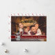 Un design moderne de carte de Noël avec votre photo de famille remplissant le visage de la carte. Décor enneigé amusant avec bande de texte rouge foncé pour vos mots.