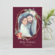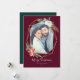 Cette élégante carte de vacances présente un joli cadre géométrique doré orné de bouquets floraux de Noël festifs, le tout sur un fond rouge festif. Les bouquets sont composés de roses, de poinsettias, de pommes de pin, de baies et de branches de pin. Personnalisez avec un message de vacances personnalisé, vos noms et votre photo préférée. Le dos de la carte est d'une belle teinte de vert forêt, mais peut être personnalisé à n'importe quelle couleur que vous souhaitez !