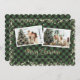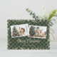 Carte de Noël en or brillant et buffle vert plaid avec un titre de police de calligraphie faux feuille d'or, neige dorée, étoiles, lumières magiques de Noël brillantes et deux photos sur contre un arrière - plan en plaid de buffle noir et vert. Personnalisez facilement cette carte de Noël scintillante avec vos photos et un nom de famille.
