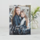 Envoyez un message de bienvenue à votre famille et à vos amis avec cette carte de Nouvel An à lettres modernes! La carte de vacances branchée affiche votre photo verticale avec la phrase "Bonne année" affichée en blanc, en lettrage, entourée d'étoiles dessinées à la main. Personnalisez la carte photo du Nouvel An avec votre nom et l'année. La carte inverse pour afficher un motif d'étoiles noires et blanches dessinées à la main.