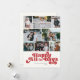 Ces cartes de vœux plates de 5" x 7" présentent un design minimaliste avec le vœu, "Joyeux Tous les Jours," en lettres rouges sur fond ivoire avec des espaces réservés pour huit (8) de vos photos préférées, le(s) nom(s) de famille et l'année.