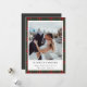 Carte de vœux de Noël personnalisée pour jeunes mariés avec un motif classique à carreaux de Noël et un message de Noël personnalisé avec photo.