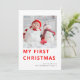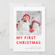Photo moderne Baby First Christmas. Mon premier Noël dans une typographie moderne et audacieuse en rouge. Il vous suffit de remplacer l'exemple d'image par votre propre préféré de format carré et de personnaliser avec votre salutation et nom en bas et message au dos.