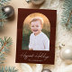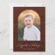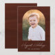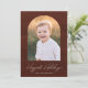 Partagez vos souhaits de vacances avec ce carte photo de vacances moderne et tendance. Votre photo préférée est affichée à l'intérieur d'une arche chic sertie contre un arrière - plan de traits de brosse couleur marron foncé. L’expression "Vacances les plus heureuses" apparaît dans un script blanc et écrit à la main avec le nom de votre famille indiqué ci-dessous. Le dos de la carte est assorti d'une aquarelle couleur brun foncé pour un look élégant et cohésif. Parfait pour envoyer des salutations de vacances élégantes et uniques.