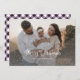Photo plaid en vichy violet personnalisé Joyeuse carte de Noël avec une couverture de neige et une belle police de script festif. Personnalisez facilement cette carte de vacances avec votre photo et votre nom de famille.
