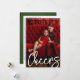 CONCEPTION AVANT : Un accueil de Noël - applaudissements - est au-dessus de la photo dans une grande police de caractères tendance. La photo verticale est hors centre, et la signature de la famille entoure la bordure blanche. Un mince accent de bordure blanche est également inclus. — DESIGN : Le design arrière comprend une arche de ligne rétro dans les tons vert olive. Les couleurs peuvent être changées dans l'espace design avancé.