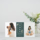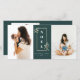 Cadre élégant en faux or pâle orné de branches de baies d'hiver sur des arrière - plans festifs en couleur vert émeraude. Caractéristiques de conception, encadré en caractères gras NOEL, lignes de texte modèles pour les noms, année et message avec deux photos à l'avant et deux espaces photo décalés à l'arrière.
