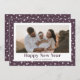 Carte du Nouvel An avec un beau titre de script festif et de petites étoiles sur un arrière - plan violet clair à l'avant et à l'arrière. L'arrière - plan peut être changé en n'importe quelle couleur. Personnalisez facilement cette carte de vacances minimaliste violet avec votre photo et votre nom de famille.