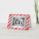 Personnalisez avec vos voeux de Noël avec votre propre photo. La photographie centrale est encadrée d'un cadre gris argenté à deux tons sur un arrière - plan rayé sucre de canne.