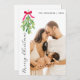 Design moderne et élégant de cartes de vacances de Noël avec une photo préférée de votre famille, votre salut de vacances "Joyeux Noël" dans un script élégant, et votre nom de famille dans une simple typographie moderne. Il y a un joli motif botanique d'aquarelle d'un faux-pied suspendu au sommet, qui recouvre légèrement le coin de la photo. Téléchargez votre photo et customisez le côté arrière de la carte avec votre message personnalisé.