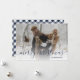 Cartes personnalisées de Noël bleu avec titre de script écrit à la main sur l'avant et motif plaid bleu et blanc en vichy à l'arrière. Personnalisez facilement ces cartes de Noël bleu plaid avec votre image et un nom de famille.