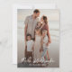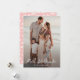Photo rose Carte Mele Kalikimaka avec une photo à l'avant et un motif tropical rose avec des feuilles de palmiers à l'arrière.