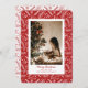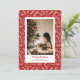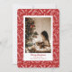 Cette carte de fête verticale festive comporte une seule photo sur un motif botanique de Noël rouge et blanc dessiné à la main.