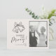 Célébrez votre premier Noël ensemble avec notre carte de vœux Mariés et Joyeux Noël – Illustration de cloches, qui présente de belles cloches esquissées nouées avec un ruban et associées à votre photo de mariage préférée. Ce design intemporel est la façon parfaite de partager la joie des jeunes mariés pendant la période des fêtes.
