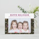 Carte de Noël avec photo de famille Joyeuses Fêtes artistiques en une ligne rose. Formes abstraites dessinées à la main en rose et beige sur fond noir. Ajoutez votre texte et votre photo pour créer une carte de vacances en famille chic et douce.