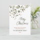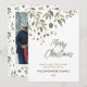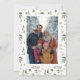 Élégante carte de Noël avec une illustration de verdure hivernale à l'aquarelle avec des baies. Elle peut être personnalisée avec votre message et le nom de votre famille, ainsi que l'année. Le verso de la carte présente un motif coordonné et un espace pour ajouter votre propre photographie.